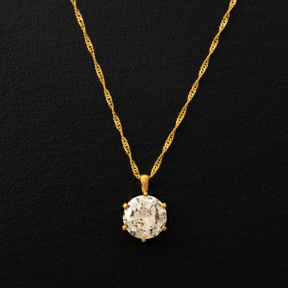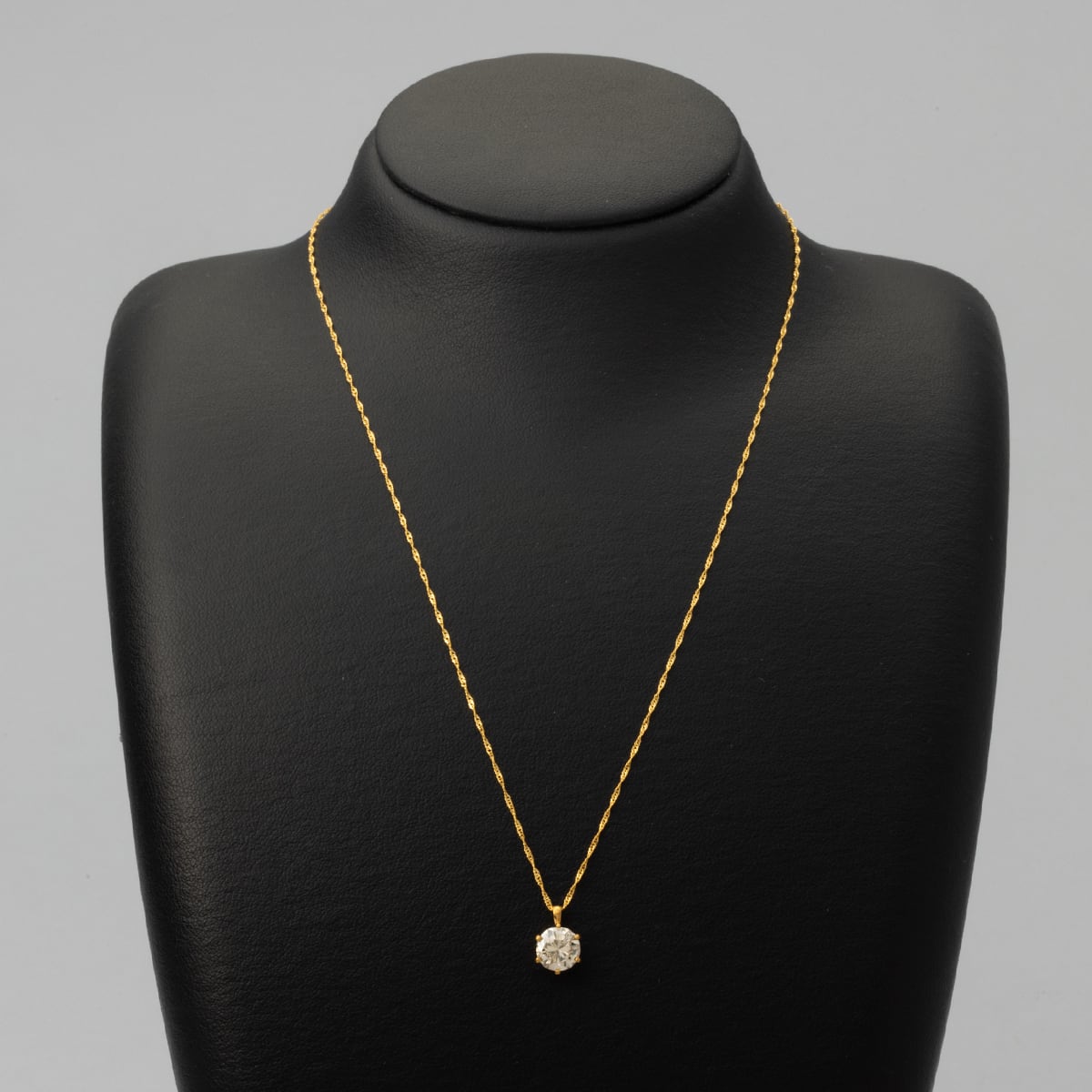 ダイヤを留める爪の1本1本まで丁寧に仕上げた純金のペンダント枠。チェーンも、純金のしなやかで高級感あるスクリューチェーン。