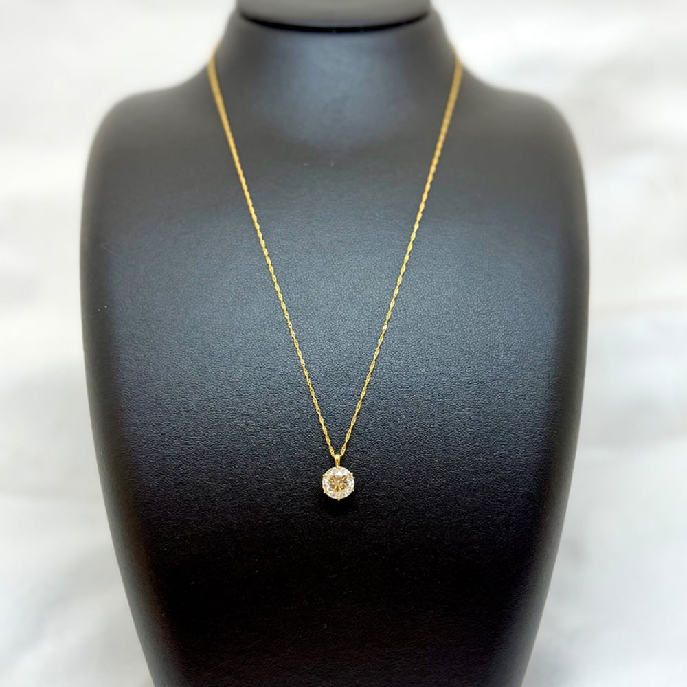 ダイヤを留める爪の1本1本まで丁寧に仕上げた純金のペンダント枠。チェーンも、純金のしなやかで高級感あるスクリューチェーン。